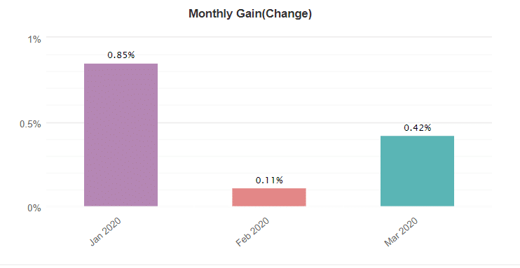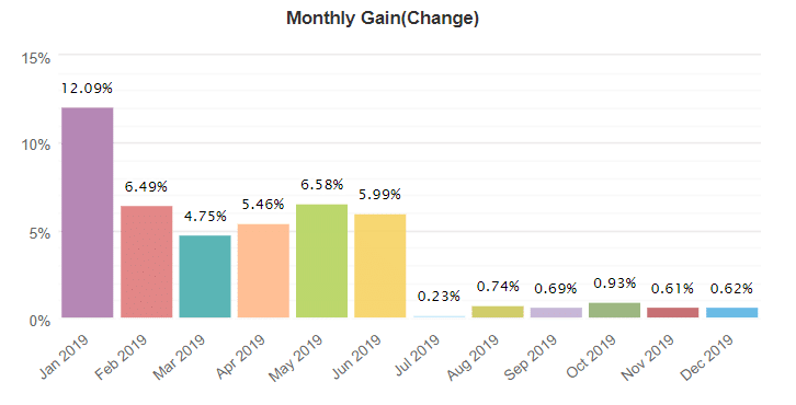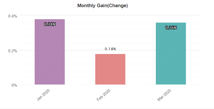 At the moment of this review, an average monthly gain for 2020 equals 0.31%, which is way too far from the expected numbers. Pretty much the same picture with another live account with a smaller deposit.